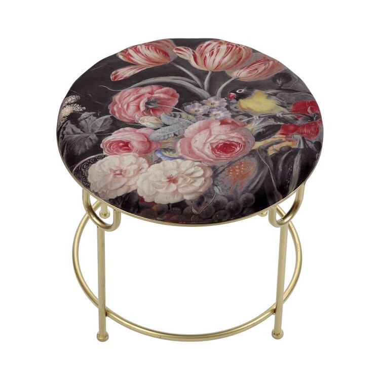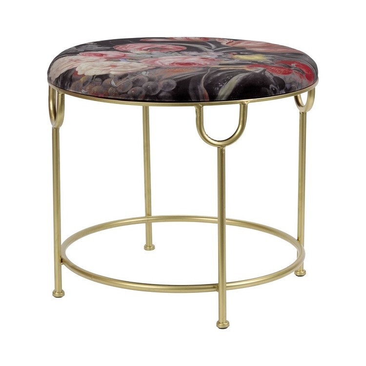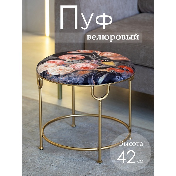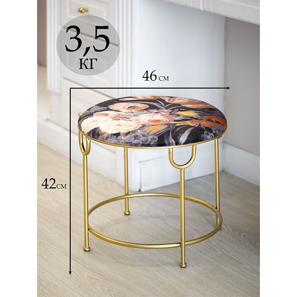 Удобный гламурный табурет на металлическом каркасе с обивкой в яркой расцветке. Это изделие станет превосходным дополнением в ваш интерьер.