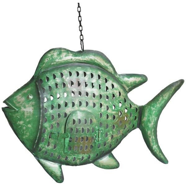 Подсвечник подвесной "Рыба" зеленый антик большая 60x14x42 см Металл