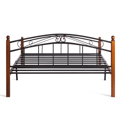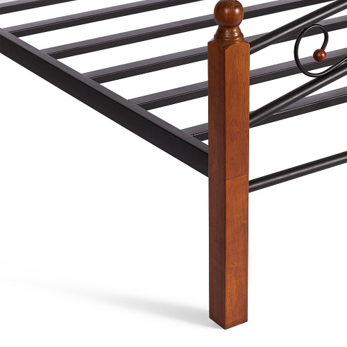 Двуспальная кровать. Материал: ножки - дерево гевея; основание, изголовье, изножье - металл. Усиленная база. Цвет: дерево - красный дуб, металл - чёрный.