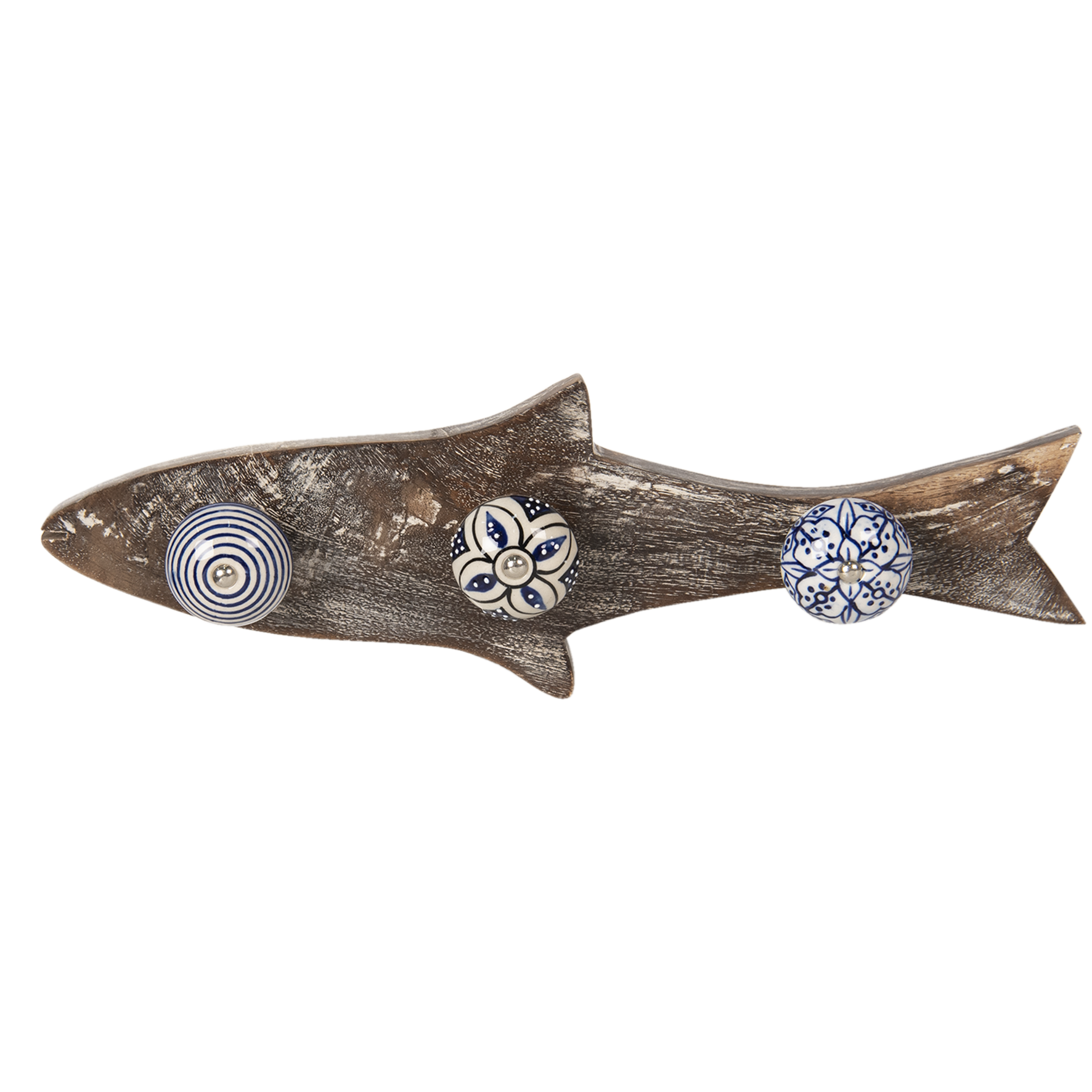 Вешалка "Рыба" 33х5х10см Дерево,керамика
