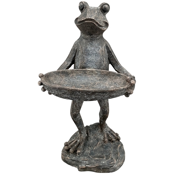 Декор "Лягушка с блюдом" стоящая 22x19x42см Магнезия