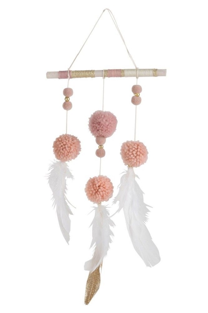 Декор подвесной "Ловец снов" 18х43см Дерево,перо,текстиль