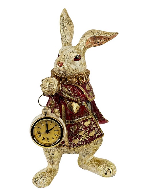 Кролик с часами в красном 13*14*30см полирезин
