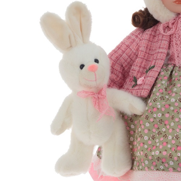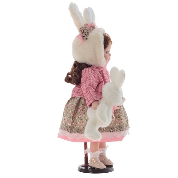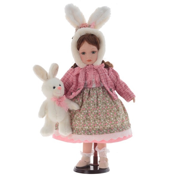 Кукла, созданная с любовью и вниманием к деталям. Она завораживает мягким взглядом, доброй улыбкой и трогательной простотой. Платье с кружевом и цветочным принтом подчёркивает женственность образа, а плюшевый зайчик в руках добавляет уюта. Кукла установлена на деревянной подставке, которая обеспечивает устойчивость и гармонично завершает композицию. Прекрасный подарок для девочки или коллекционера — она украсит интерьер и подарит ощущение тепла и радости.