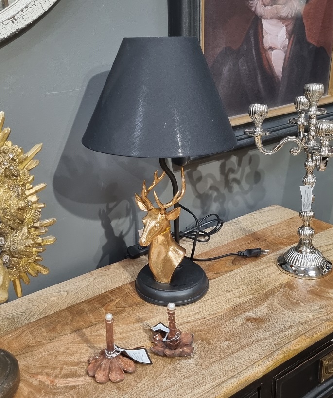 Лампа с головой оленя в.46 см Полистоун/металл/текстиль
