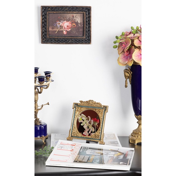 Настольное зеркало в роскошном багете под старину, будет оригинально смотреться на вашем туалетном столике. Это изделие украсит любой интерьер и придаст уют вашему дому, создавая уникальную композицию сочетанием нескольких предметов. Изделие имеет признаки искусственного состаривания.