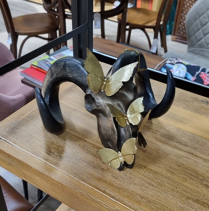 Декор бараний череп с бабочками в.20х24х15см полистоун/металл Не подвешивается