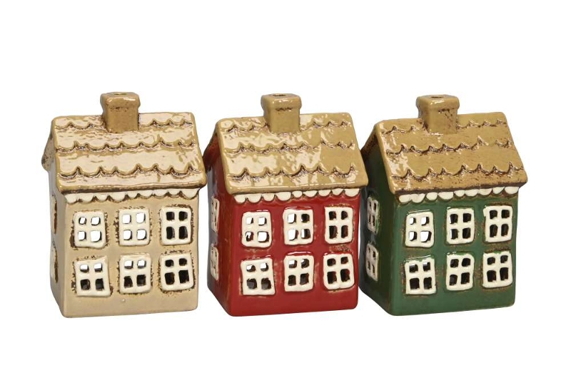 Подсвечник "Домик" беж/зеленый/красный в ассортименте 10x8xH14см