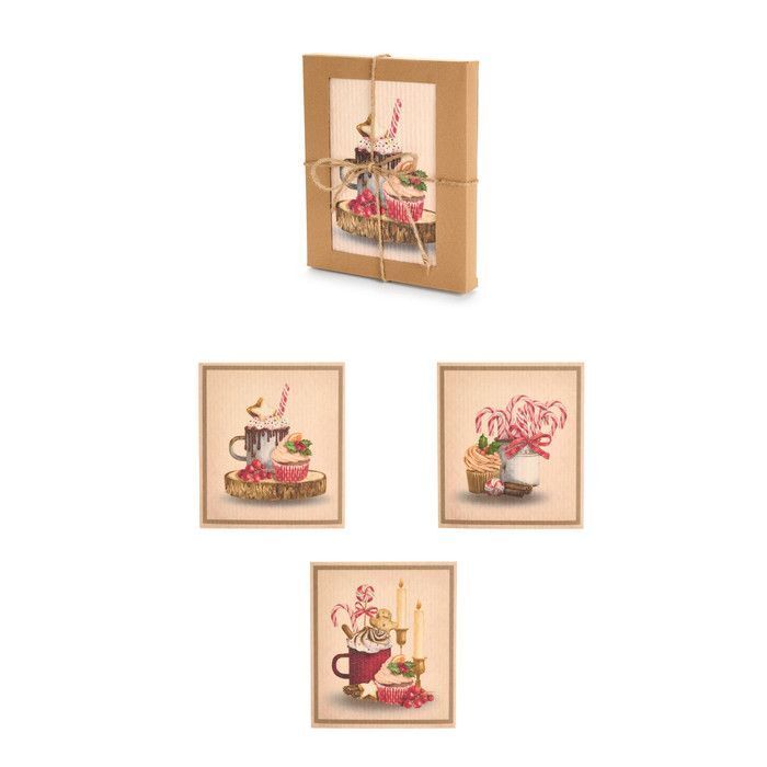 Набор из 6 кухонных тряпочек для уборки "Сладкий Новый год" 17,2x19,4см Целлюлоза