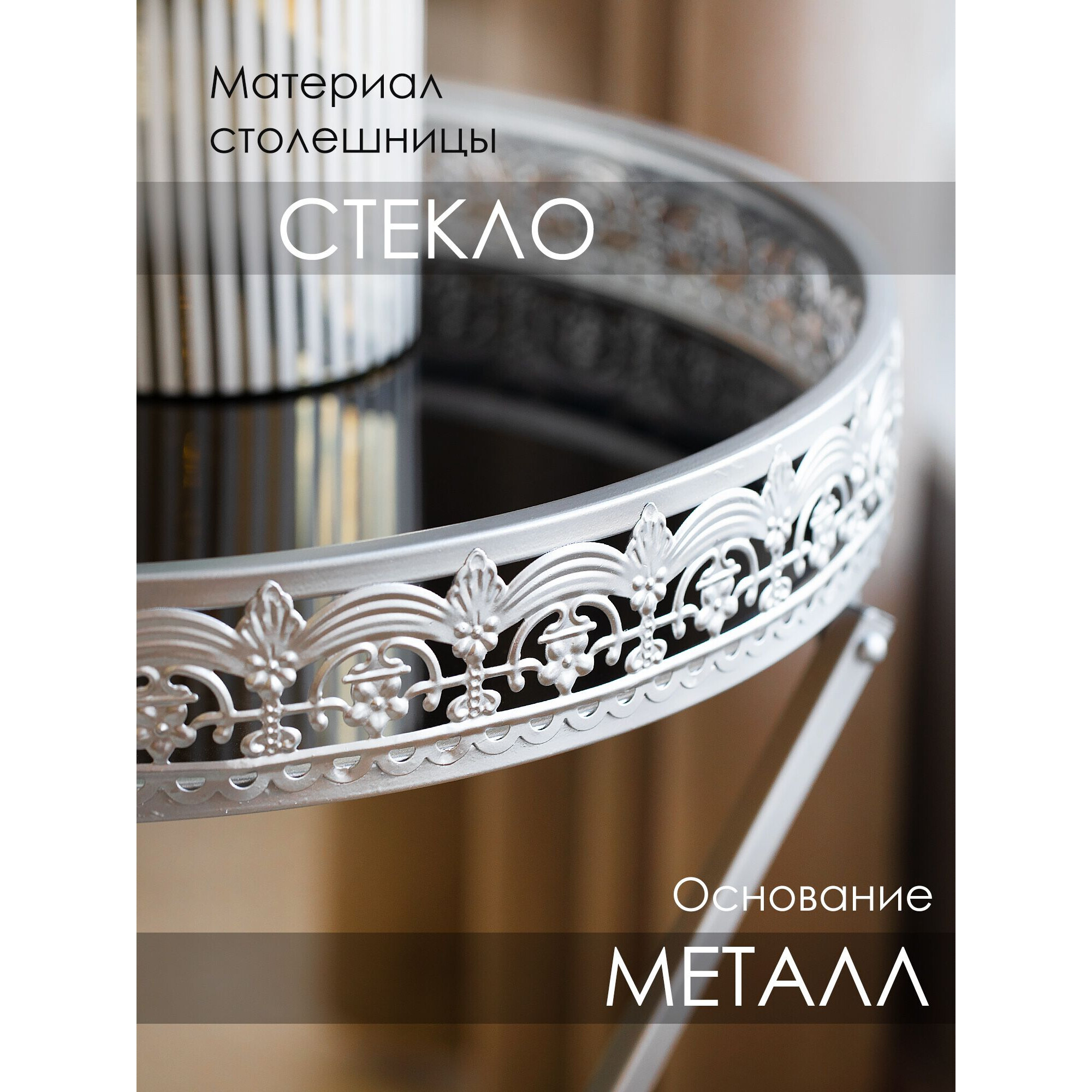 Столик интерьерный со стеклянной столешницей 49.5х49.5х71см Металл,стекло