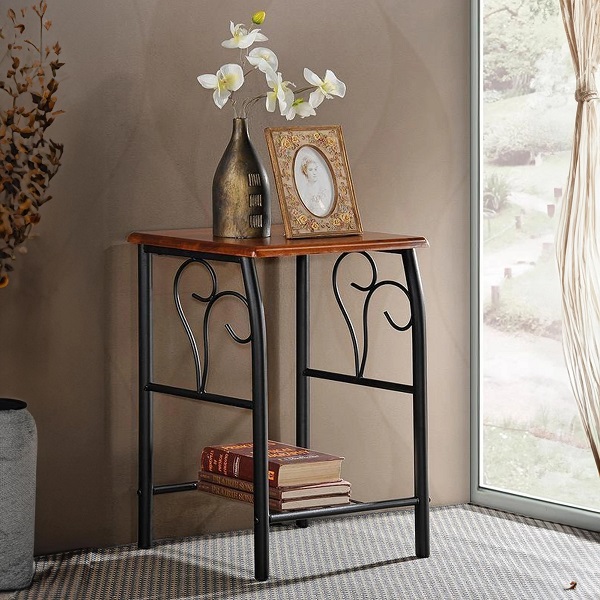 Тумба прикроватная PICCOLO металл/гевея, 37х40х60см, черный/красный дуб